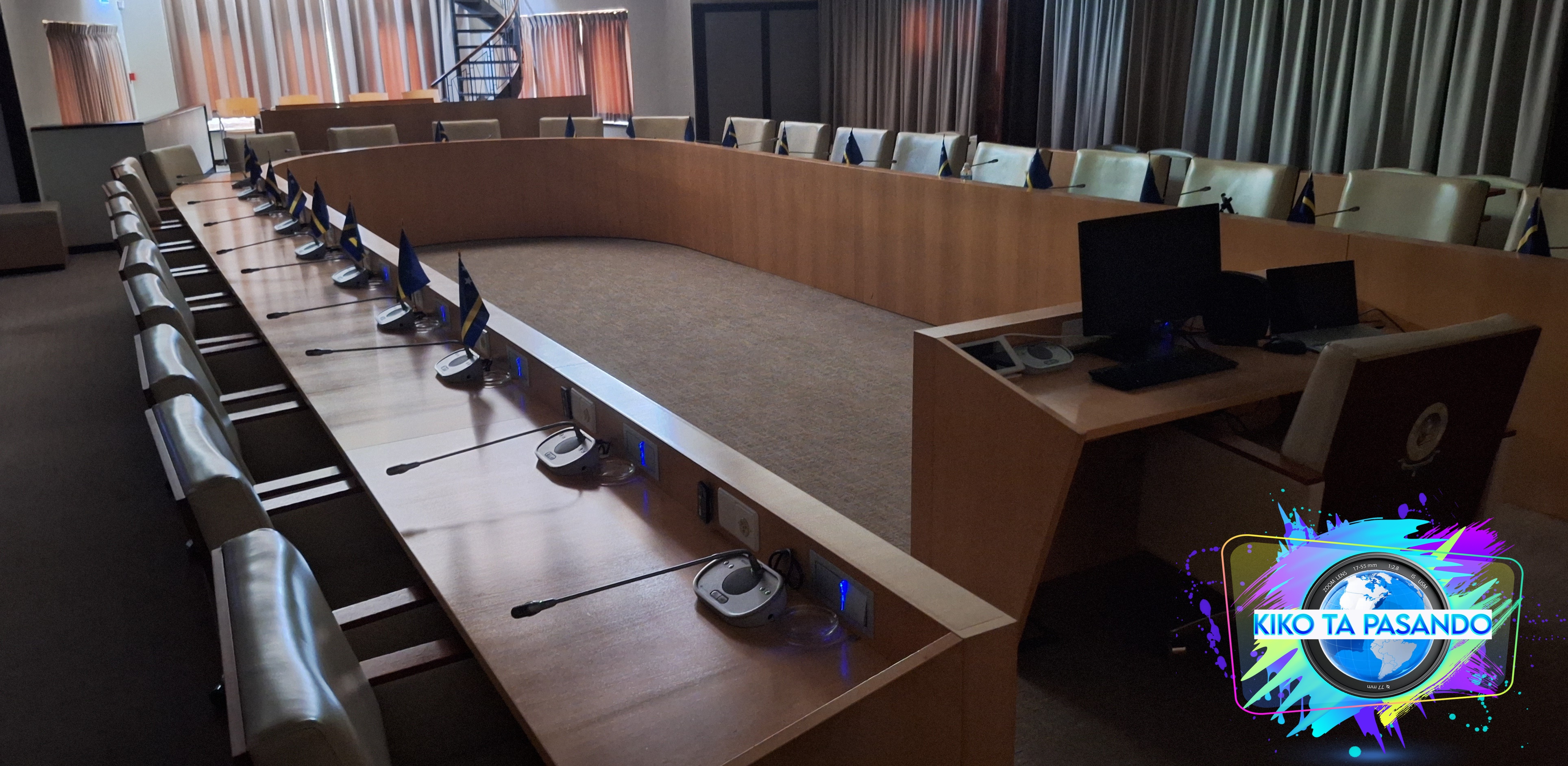 sala di reunion prinsipal di Parlemento di Kòrsou. A skohé pa pone e interogashon
