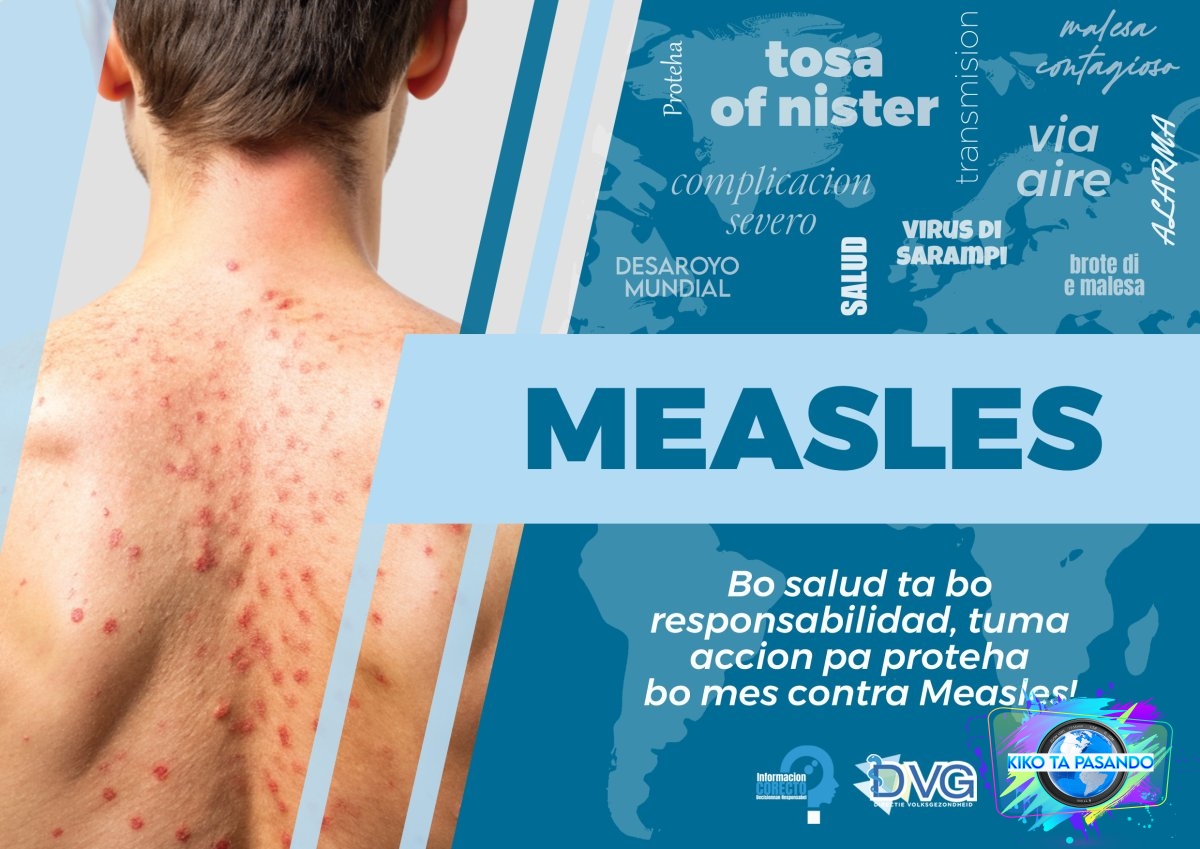 Measles of manera nos ta yam’e “Sarampi” ta un di e malesanan mas contagioso cu ta existi y ta wordo causa pa e virus di sarampi. E virus aki ta transmiti su mes hopi facil via aire na momento cu e persona infecta ta tosa of nister. E malesa por ocaciona complicacion severo y asta morto. Prome cu introduccion di e vacuna contra Measles na mundo den aña 1963 tur aña un cantidad grandi di mucha particularmente bou di 5 aña tawata fayece aconsecuencia di e malesa aki. Desde introduccion di e vacuna contra Measles e casonan di Measles mundialmente a baha y na Aruba desde su introduccion na aña 1979 nos no a mira e malesa aki mas desde decadanan 80. Esaki ta danki na e grado di vacunacion halto (95%) bou di nos muchanan entre edad di 0 cu 10 aña.