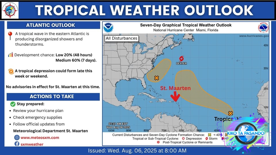 The Meteorological Department St. Maarten is closely monitoring the system and will provide updates as needed.