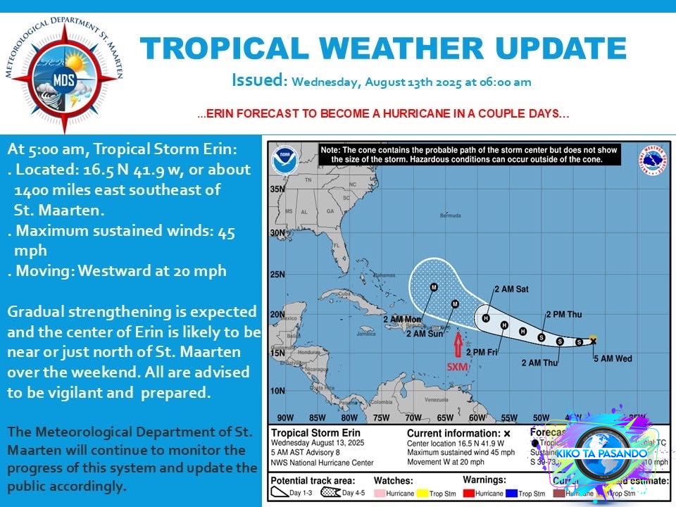 GOBIERNU Government of Sint Maarten Tropical Weather Update August 13, 2025 REDAKSHON Government of Sint Maarten Tropical Weather Update KOMPARTI E NOTISIA AKI VIA / Share the news Share on Facebook (Opens in new window) Facebook Share on WhatsApp (Opens in new window) WhatsApp Share on Telegram (Opens in new window) Telegram More Share on Reddit (Opens in new window) Reddit Share on Tumblr (Opens in new window) Tumblr Share on Pinterest (Opens in new window) Pinterest Like this:Like Loading... Related 639114718427035" 639114718427035" %d
