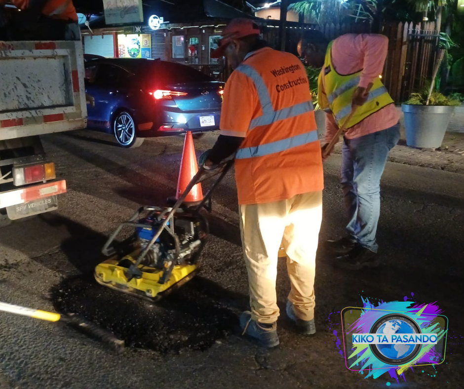 The Ministry of Public Housing, Spatial Planning, Environment and Infrastructure (VROMI) hereby informs the public that a comprehensive round of pothole repairs is currently underway across the main road network. This maintenance effort started last evening, December 8th and will continue through to December 11th, during the evening work hours of 11:00 p.m. to 6:00 a.m.