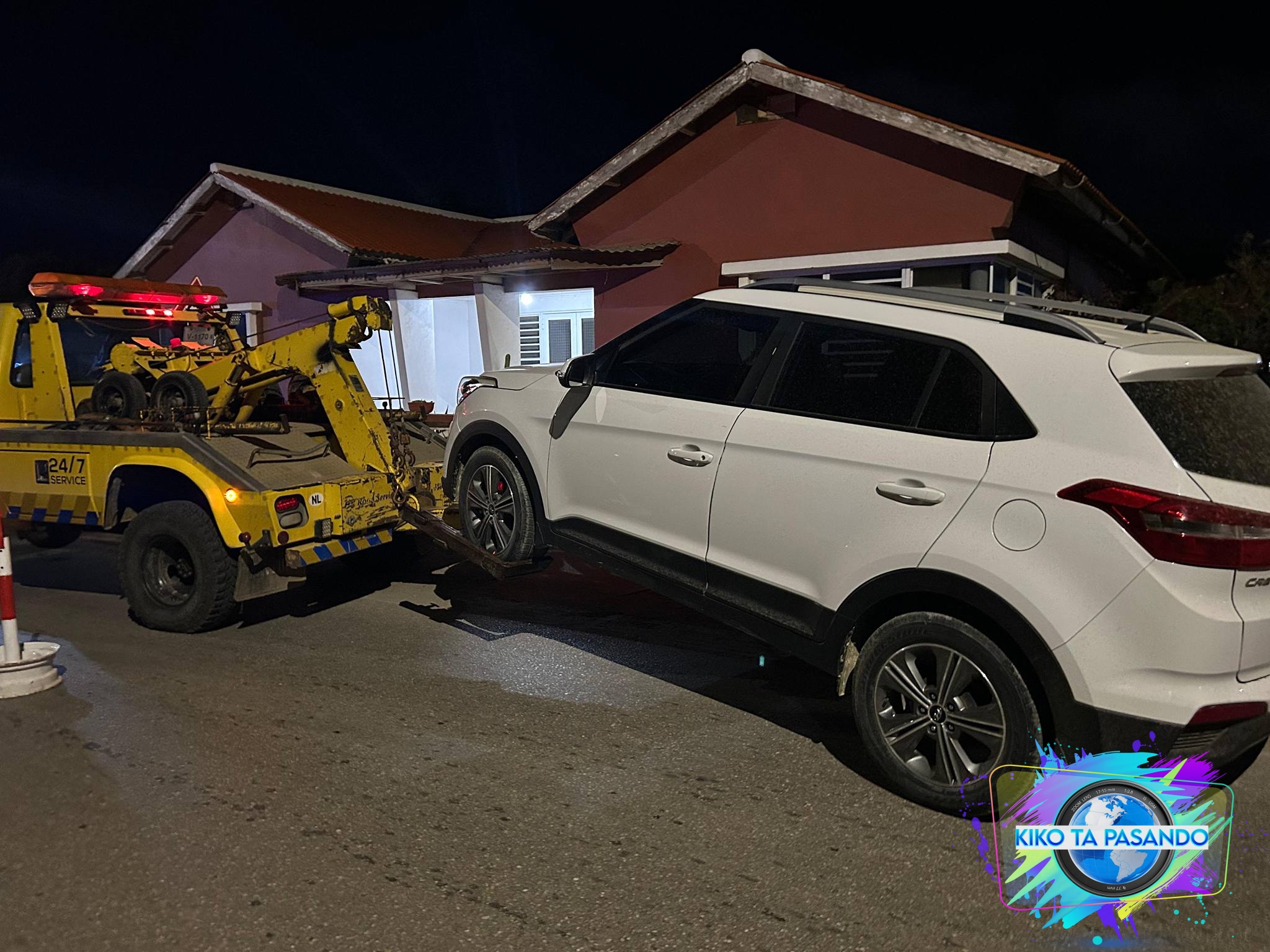 Durante marcha, polis a topa un vehíkulo stashoná tras di barikada na Kaya Kanari. A pidi asistensia di un “takelwagen” pa transportá e vehíkulo aki pa warda di polis.