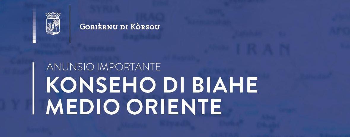 Gobièrnu di Kòrsou [TUMA NOTA]: Gobièrnu di Kòrsou ta úrgi tur yu di Kòrsou ku ta aktualmente den Medio Oriente, pa tene kuenta ku e riesgonan di seguridat den e region.