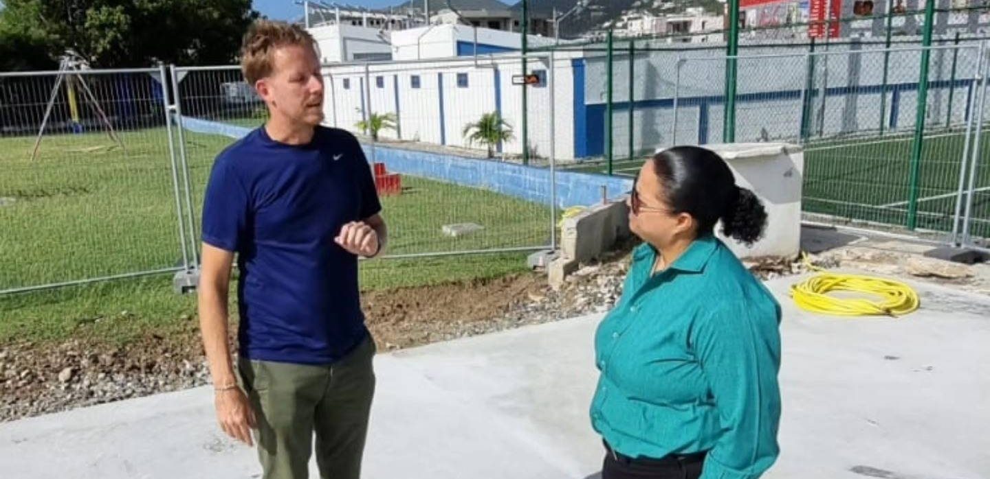Yesterday, I dropped by the National Sports Institute (NSI) to take a look at the progress on the multipurpose court at Raoul Illidge Sports Complex (RISC). Director Jisk Goslinga gave me an update on where we’re at, as well as next steps to finalizing the court’s development. This is in partnership with SMMC and SZV, who contributed some funding to the court’s development.