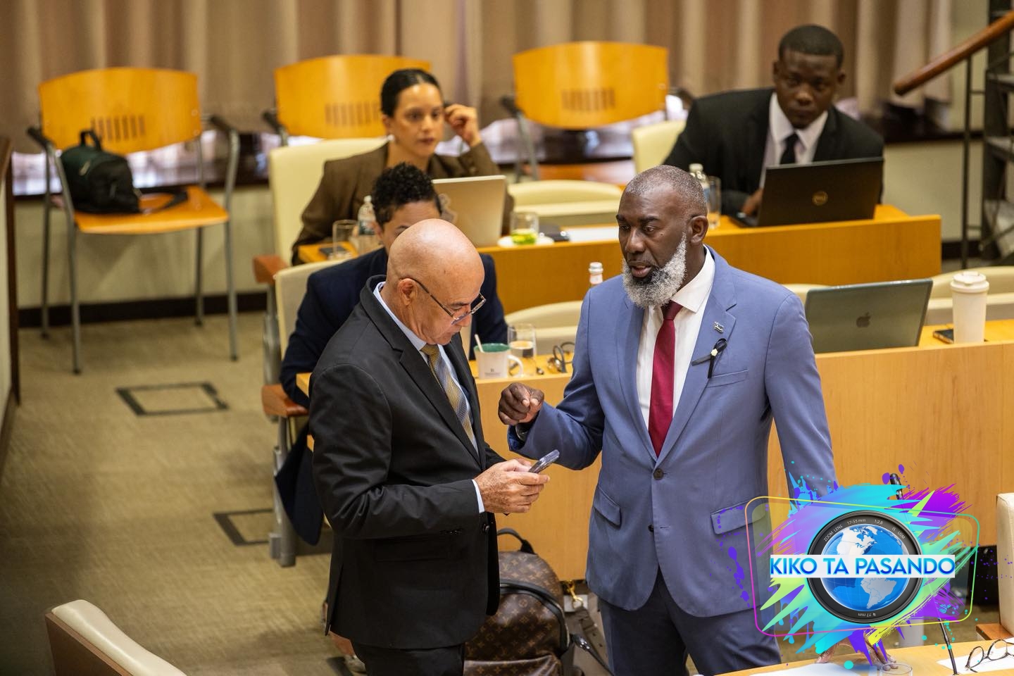 Djaweps, 9 di aprel 2026, Promé Minister Gilmar Pisas ta presente den Parlamento pa kontinuá ku deliberashon tokante e situashon di Kas di Kòrsou i e ròl di Minister Plenipotensiario.