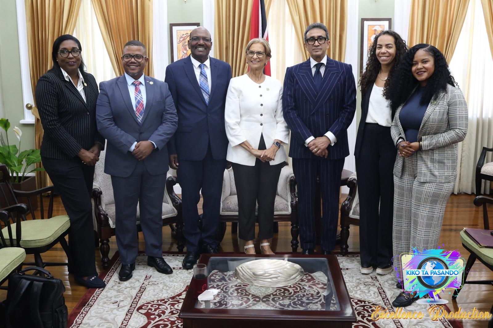 During the courtesy call the President of Parliament of Sint Maarten, the President of the Senate of Trinidad and Tobago, and the Speaker of the House of Trinidad and Tobago, as well as the Members of the Parliament of Sint Maarten exchanged courtesies, gifts and discussed their respective constitutional and parliamentary structures, the history of both countries, cooperation between Sint Maarten and Trinidad and Tobago, and (Caribbean) regional cooperation.